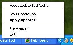 In addition to selecting the "Apply Updates" menu item the user may initiate the "Apply Updates" action by click on the notifier icon in the tasktray or by clicking on the balloon notification window.